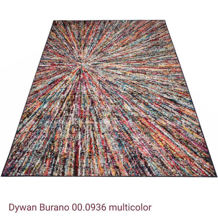 Gdy mówimy o dywanach Burano, nie sposób nie wspomnieć o ich zdolności do przyciągania wzroku i dodawania wnętrzom życia, jak na przykład dywan Burano 00.0936. Ten model to prawdziwa eksplozja barw, gdzie ciemna baza harmonijnie splata się z żywymi odcieniami, takimi jak intensywne czerwienie, pomarańcze i żółcie, przeplatane zieleniami, niebieskimi tonami, fioletami oraz białymi akcentami. Jego wzór, przypominający wirujące spirale lub rozbłyski gwiazd, tworzy hipnotyzujący efekt ruchu i głębi, sprawiając, że wnętrze nabiera trójwymiarowego charakteru. Dywany takie jak ten, dostępne na Dywany-Chodniki.com, to nie tylko praktyczne elementy dekoracyjne, ale także dzieła sztuki, które mogą stać się centralnym punktem każdej aranżacji, dodając jej energii i nowoczesnego sznytu.