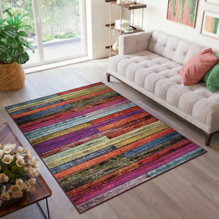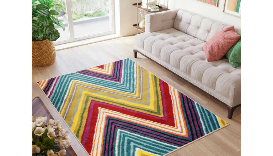 Pomyśl o dywanie Burano 00.0976 jako o sercu salonu w stylu retro-futurystycznym, gdzie towarzyszą mu skórzana sofa w szarym odcieniu, chromowane stoliki i miedziowe lampy geometryczne. Poduszki w kolorach pasów dywanu dodadzą dynamizmu, tworząc harmonijną całość. W młodzieżowym pokoju ten dywan może ożywić przestrzeń, łącząc się z białymi regałami i kolorowymi plakatami, co sprzyja kreatywności. Również w biurze projektowym jego uporządkowane wzory mogą inspirować do innowacyjnego myślenia, kontrastując z prostymi meblami. Dywan Burano 00.0976 to propozycja dla entuzjastów geometrycznych motywów i bogatej palety barw, którzy pragną wprowadzić do domu odrobinę awangardy i nowoczesności, czyniąc go miejscem pełnym energii i inspiracji.