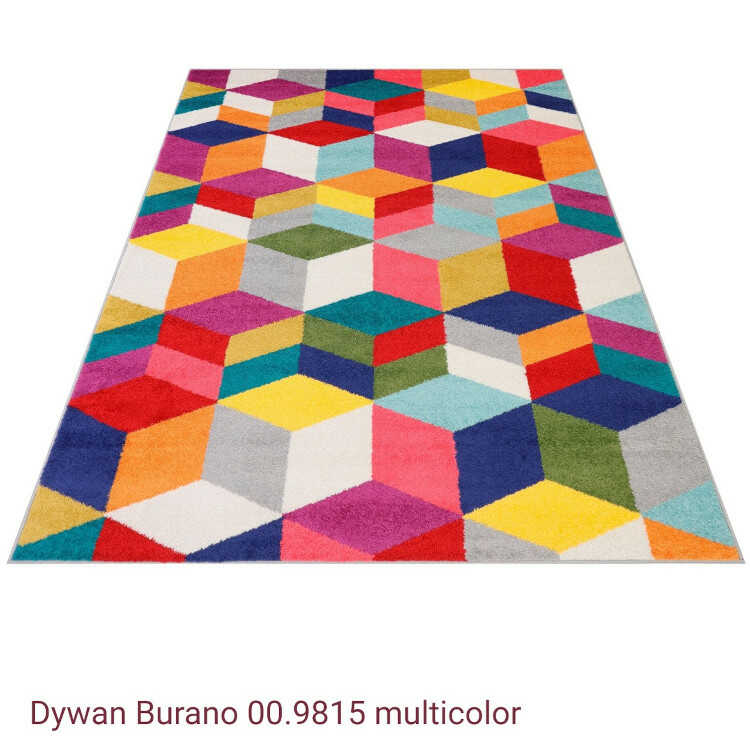 Doświadcz futurystycznego dynamizmu z dywanem Burano 00.9815, który wnosi do kolekcji Burano geometryczne, trójwymiarowe wzory, łącząc zabawę z nowoczesnością w sposób, który ożywia każde wnętrze. Ten model prezentuje układ sześcianów w różnych perspektywach, z jasną bielą i szarością jako bazą dla intensywnych barw – czerwieni, pomarańczy, żółci, niebieskiego, zieleni, fioletu i turkusu – tworząc zabawny, kontrastowy efekt. W odróżnieniu od bardziej romantycznych czy abstrakcyjnych poprzedników, jego wzór jest dynamiczny i strukturalny, z prostokątnym kształtem oraz ciemnym obramowaniem bez frędzli, co podkreśla minimalistyczny styl.